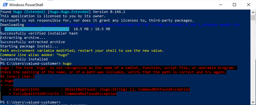 Actually this is a good break, because we cannot use Windows Powershell we need Powershell. Yeh. I cannot fix that. Pretty wild. There is a difference. We will jump back here, but we need to install Powershell first.